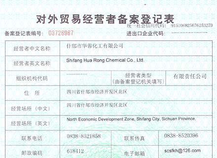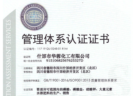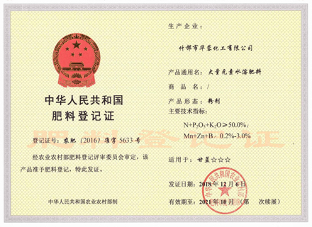什邡市華蓉化工有限公司原名什邡華蓉科技有限責任公司,位于磷礦資源豐富的四川省什邡市,距成都60公里,交通運輸便利,是一家專業(yè)生產(chǎn)、研發(fā)精細磷化工系列產(chǎn)品的大型生產(chǎn)企業(yè)。生產(chǎn)設備先進,技術(shù)研發(fā)團隊強大,現(xiàn)公司占地面積約30000平方米,擁有5條生產(chǎn)線,主要生產(chǎn)大量元素水溶肥、磷酸二氫鉀、磷酸二氫銨、磷酸氫二銨、硝酸鉀、磷酸脲以及磷酸,年總產(chǎn)量為100000噸以上。公司資質(zhì)齊全,管理規(guī)范,已取得安全生產(chǎn)許可證、ISO9001:2015質(zhì)量管理體系認證、食品生產(chǎn)許可證、工業(yè)產(chǎn)品生產(chǎn)許可證、自營進出口經(jīng)營權(quán)進出口證書以及出口歐盟國家部分產(chǎn)品的REACH證書。